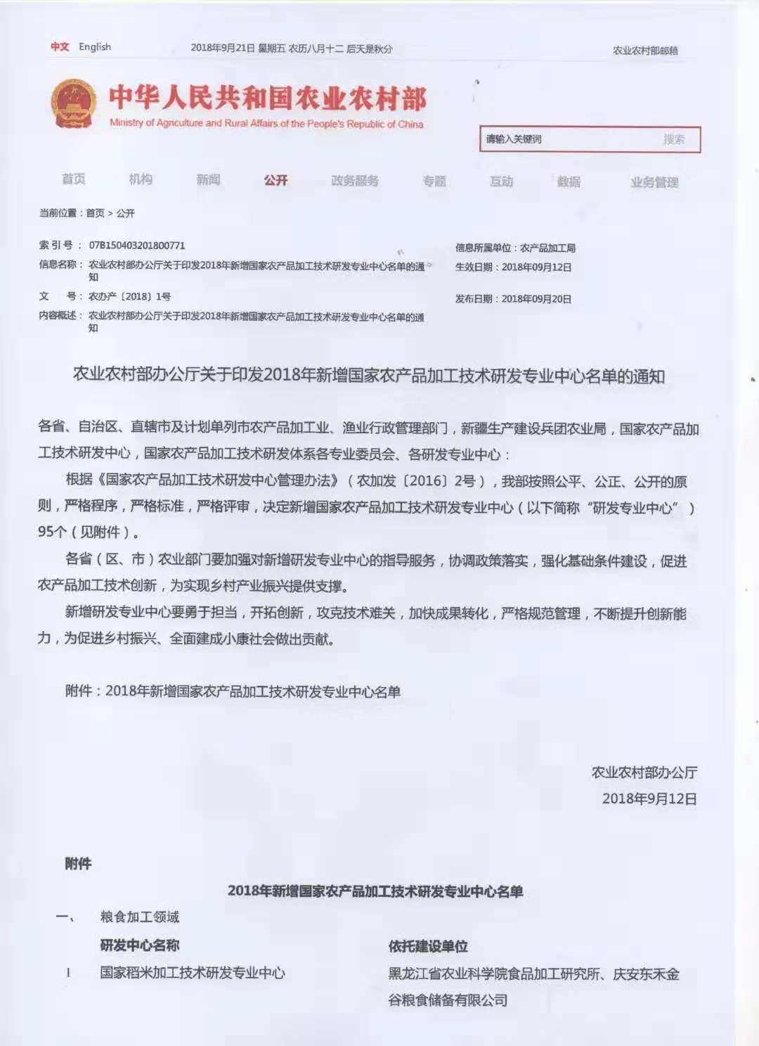 2018年新增國(guó)家農(nóng)產(chǎn)品加工技術(shù)研發(fā)專業(yè)中心名單